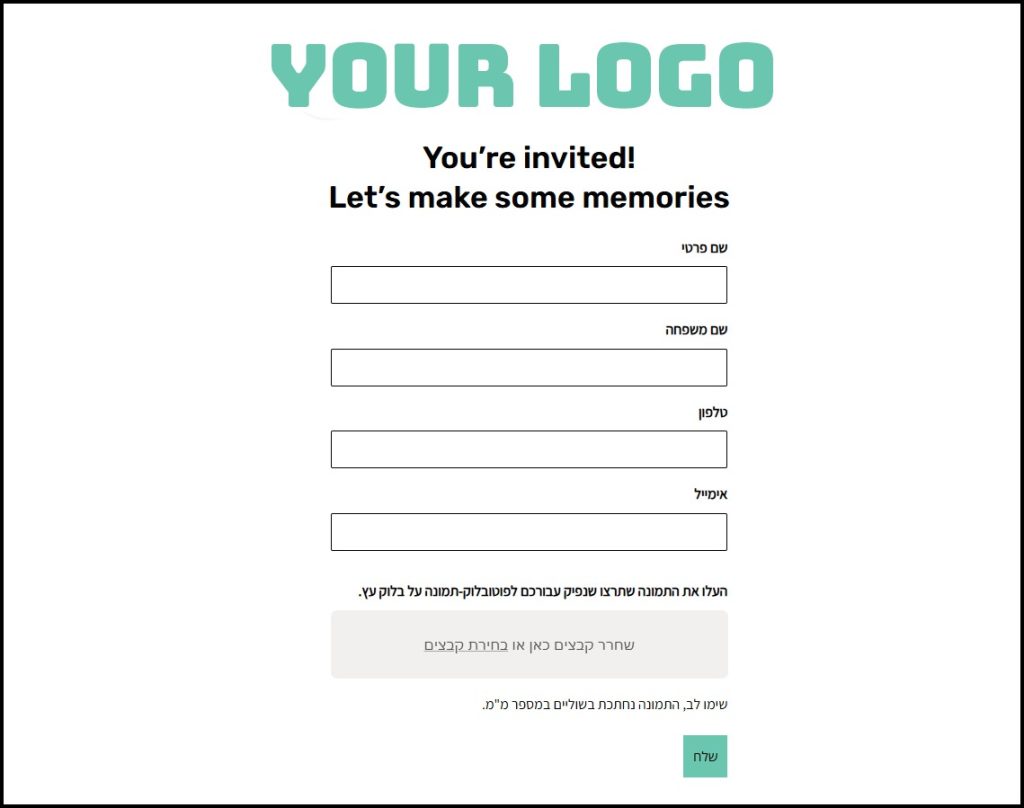 לכן יצרנו מערכת חכמה-מיני אתר אישי עבורכם עם לוגו החברה לאיסוף התמונות.