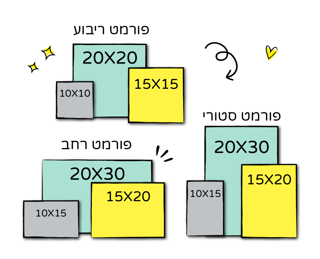 בחרו את הגודל המועדף עליכם, העלו את התמונות שתרצו ותהנו מהנחות משתלמות